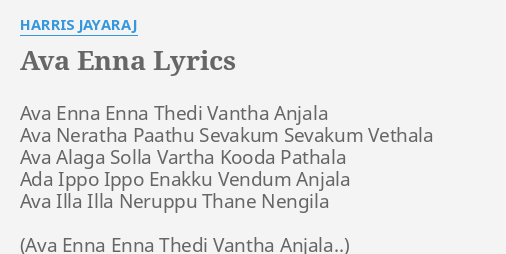 Ava Enna Enna Thedi Vantha Anjala Lyrics / Alnadeen super4 super4 season 2 al nadeen singing ava enna enna thedi vantha anjala full hd.mp3. Ava Enna Enna Thedi Vantha Anjala Lyrics - Yaro kudave varuva whatsapp status ava enna enna thedi vantha anjala song status for whatsapp.