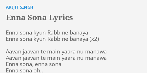 Enna Sona Lyrics In Hindi : Inna sona kyun rab ne banaaya aavan jaavaan te. Enna Sona Lyrics In Hindi - Enna sona lyrics & song details: