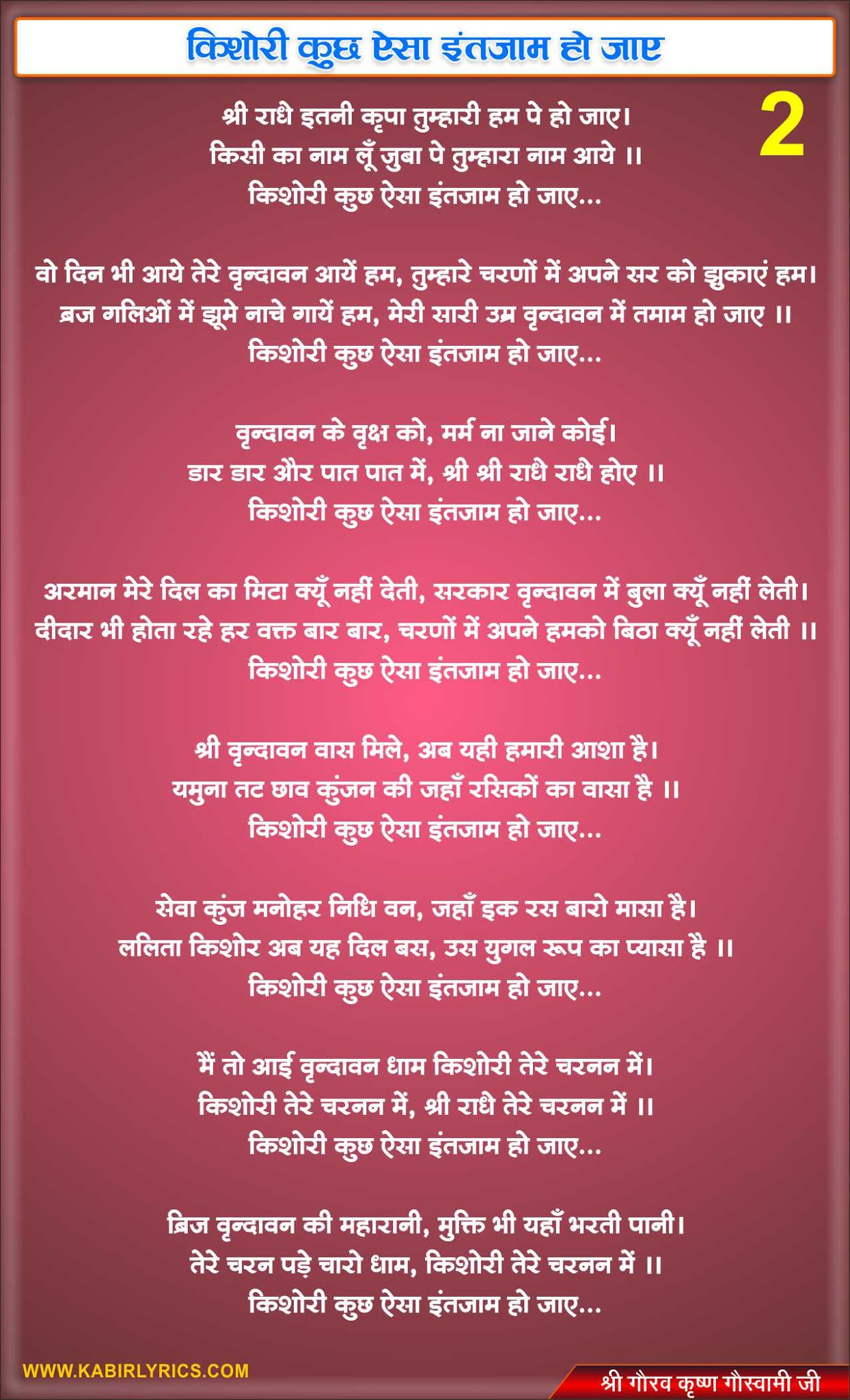 Krishna Bhajan Lyrics Kishori Kuch Aisa Intezaam Ho Jaye Lyrics / किशोरी कुछ ऐसा इंतजाम हो जाए। Krishna Bhajan Lyrics Kishori Kuch Aisa Intezaam Ho Jaye Lyrics : Video is labeled by ml studioz.