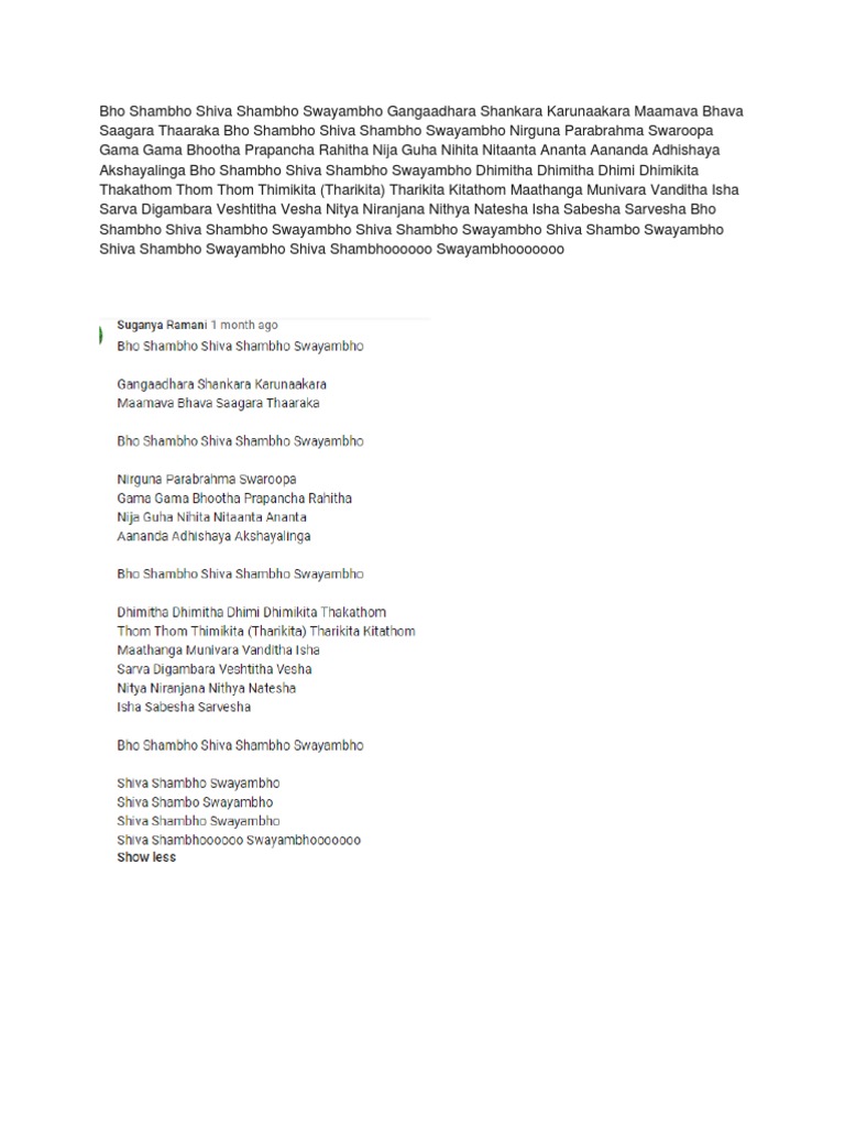 Om Shambo - Lyrics to south indian carnatic songs and bhajans by various composers in a variety of languages. Om Shambo / More om shiva shambo lyrics.