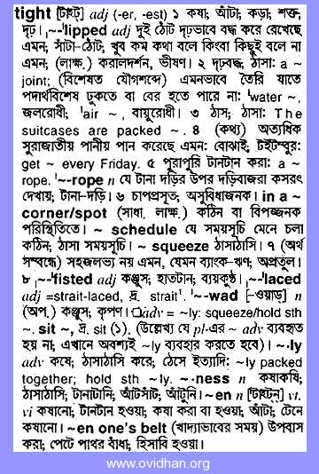 English To Bangla Meaning Of Tight Bdword Com - He's a bit tight with his money.